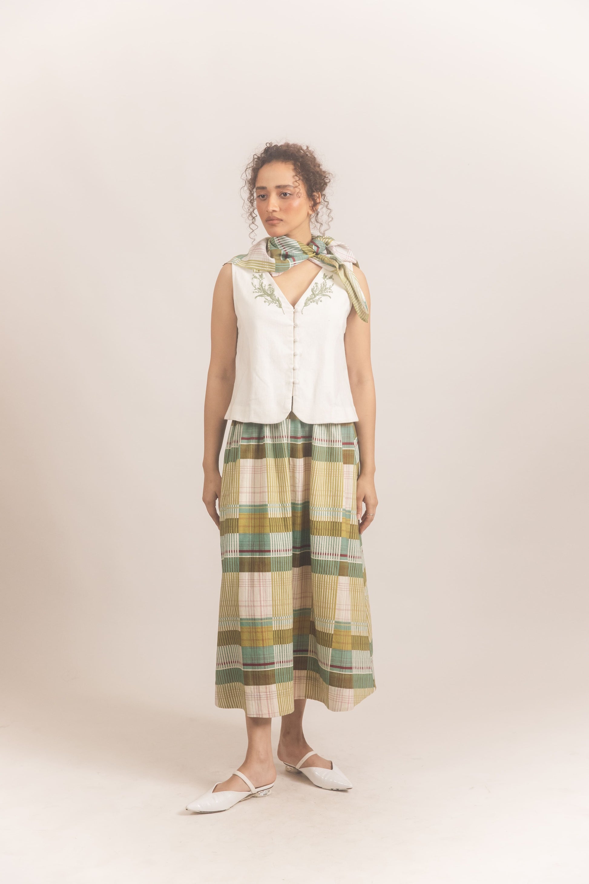 Made from 100% handwoven khadi, the Edith skirt is a midi gathered skirt, comfortable and easy to wear.